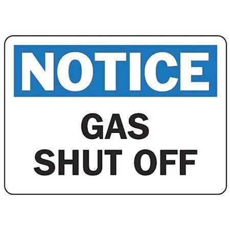 Accuform MFXG805VP Sign, Notice Gas Shut Off", 7" Length x 10" Width x 0.055" Thickness, Plastic, 7" x 10", Blue/Black on White