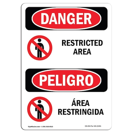 OSHA Danger Sign, Restricted Area W/ Symbol, 10in X 7in Decal