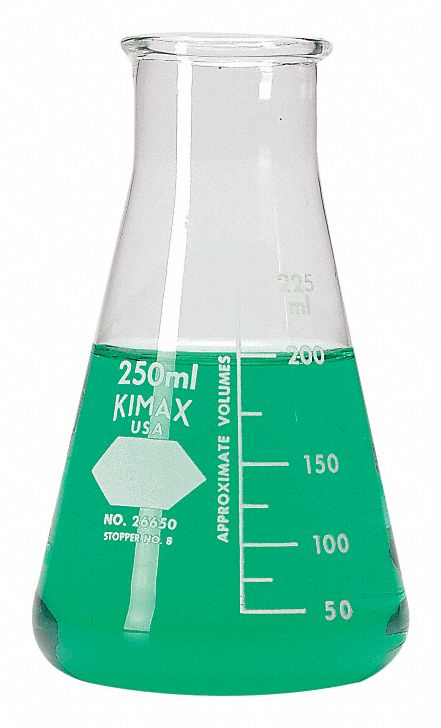 - <b>Labware ASTM Specification</b>: E438 <b>Includes</b>: Heavy Dyty Tooled-Top Finish with Capacity Scale <b>Stopper Size</b>: 6 <b>Diameter</b>: 66mm <b>Color</b>: Clear <b>Labware Body Material</b>: Borosilicate Glass <b>Capacity</b>: 125mL <b>Labware Capacity - English</b>: 4.22 oz. <b>Item</b>: Erlenmeyer Flask <b>Graduation Subdivisions</b>: 25ml <b>Sterile/Non-Sterile</b>: Non-Sterile <b>Height</b>: 108mm <b>Labware Neck Style</b>: Straight <b>Flask Type</b>: Erlenmeyer