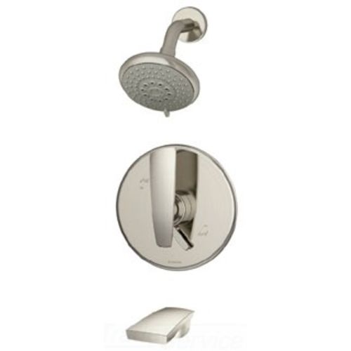 The Symmons S-4102 Naru Tub/Shower System comes in a enticing Satin Nickel finish. This tub/shower system with lever handle features a Temptrol Pressure-Balancing mixing valve. It also offers you a secondary integral diverter/volume control handle, and a