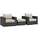 Sojourn Collection EEI-1891-CHC-BEI-SET 3 PC Outdoor Patio Sectional Set with Sunbrella Fabric, Powder Coated Aluminum Frame, Synthetic Rattan Weave Material, Water and UV Resistant in Canvas and Antique Beige Color