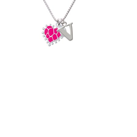 | Feature | Hot Pink Giraffe Print Heart with Nurse Hat Capital -V- Initial Necklace. |