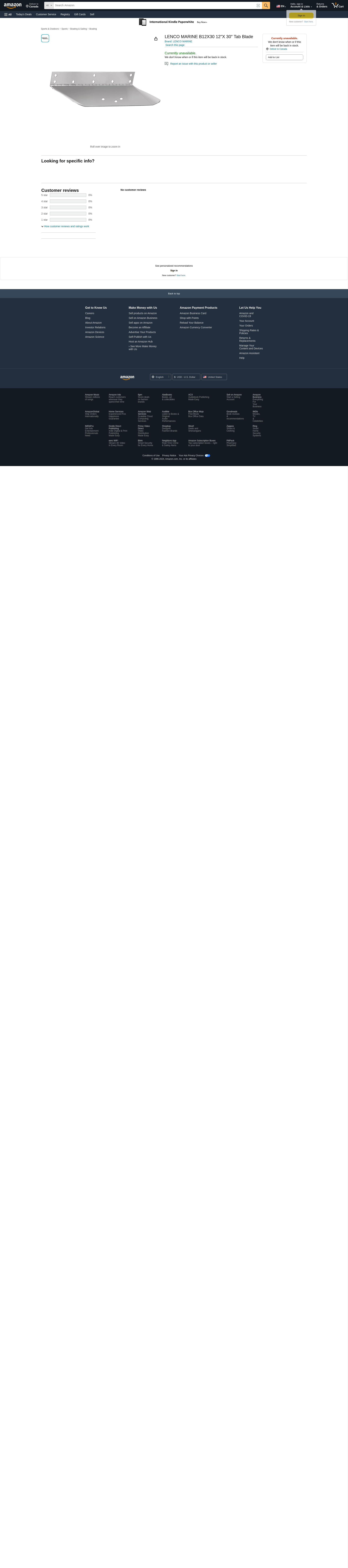 LENCO MARINE B12X30 12"X 30" Tab Blade