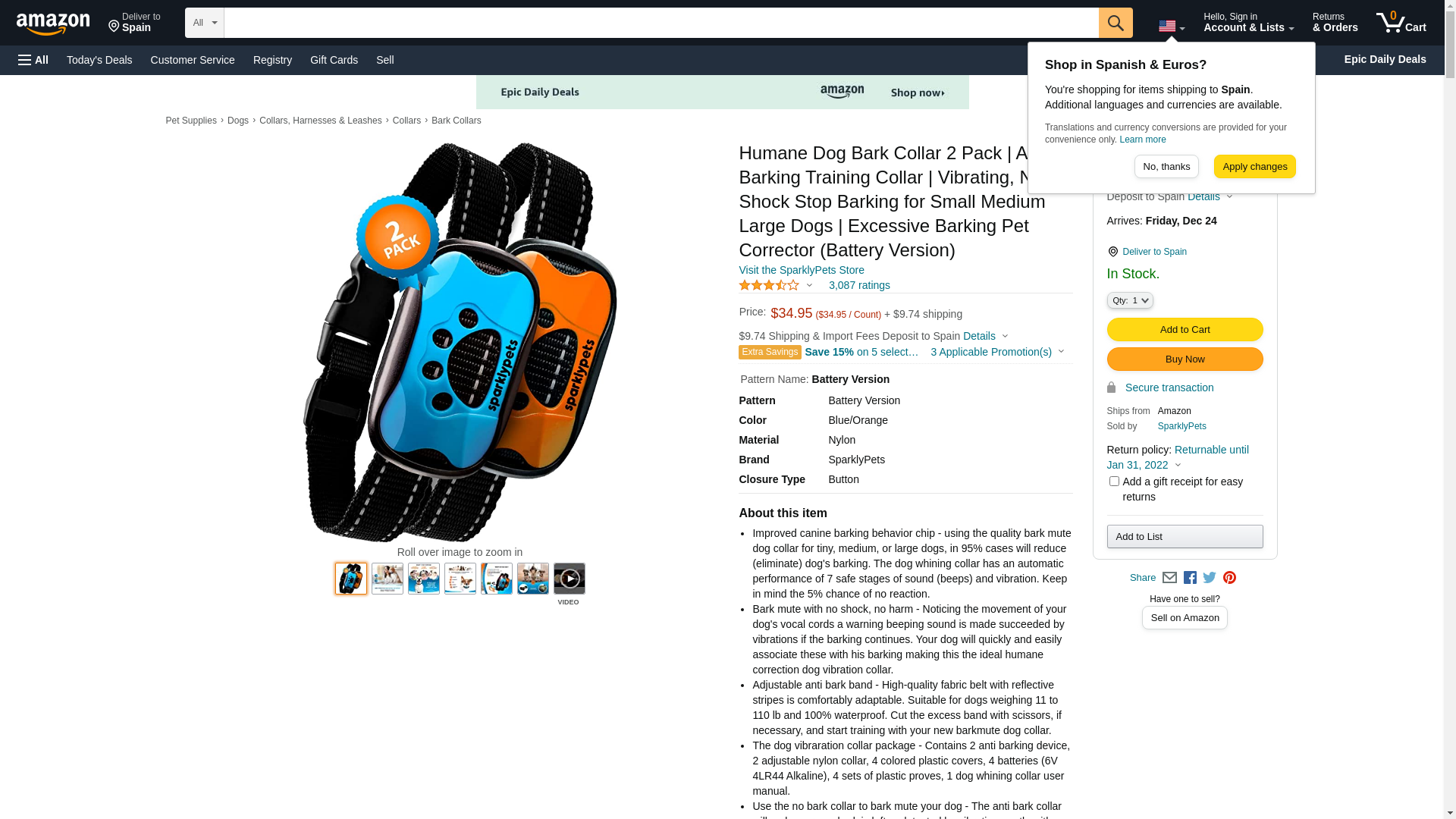 electronic color 10 pounds lbs best rechargeable 15lbs outdoor Do you want your dog to stop barking, without harming him? Then, you need SpaklyPets Dog Bark Collar.</b> <br>Our smart automatic bark collar will quickly and easily teach your dog not to bark, thanks to the humane dog bark collar with only vibration and sound.</br> <br><b>Features and Benefits:</br></b> Anti Barking Collar brings you high quality design, optimum selection of materials that will last for a long time. <br>Having seven progressive levels of sensitivity, you can start low and gradually increase the vibration mode to safely train your dog not to bark.</br> <br>The adjustable strap of the collar is made of durable nylon reflective material. Our stop barking collar are 100% waterproof, allowing you to walk or train your dog in any weather.</br> <br><br>The no barking collar is an excellent choice for small medium and large dogs weighing from 11 up to 110lb with a neck size of 9 to 22 inches.</br></br> <b>How to use the Bark Collar:</b> First, set the vibration sensitivity level with the help of the side buttons, “+” and “- “ <br>A warning tone will follow your dog’s first and second bark.</br> <br>If your dog barks a third time, anti bark collar will emit the warning tone and vibration.</br> <br>The intensity of the vibration will be maintained until the 7th bark.</br> <br>Sleep mode will turn on and the dog training collar will stop working for 1 minute.<br> <br><b>Package Included:</br></b> <br>2 x Dog Anti Barking Device</br> <br>2 x Adjustable Nylon Collar</br> <br>4 x 6V 4LR44 Alkaline Battery</br> <br>4 x Colour Design Plastic Covers ( Blue & Orange )</br> <br>4 x Sets Plastic Probes</br> <br>1 x User Manual</br> <br><p>Click the <b>ADD TO CARD</b> button right now and get your control Dog Barking Collar</br></p> Based on our client's feedback, have shown that our collar is not working for 5% of the dogs, due to their temperament. If this happens – please, do not worry and contact us.