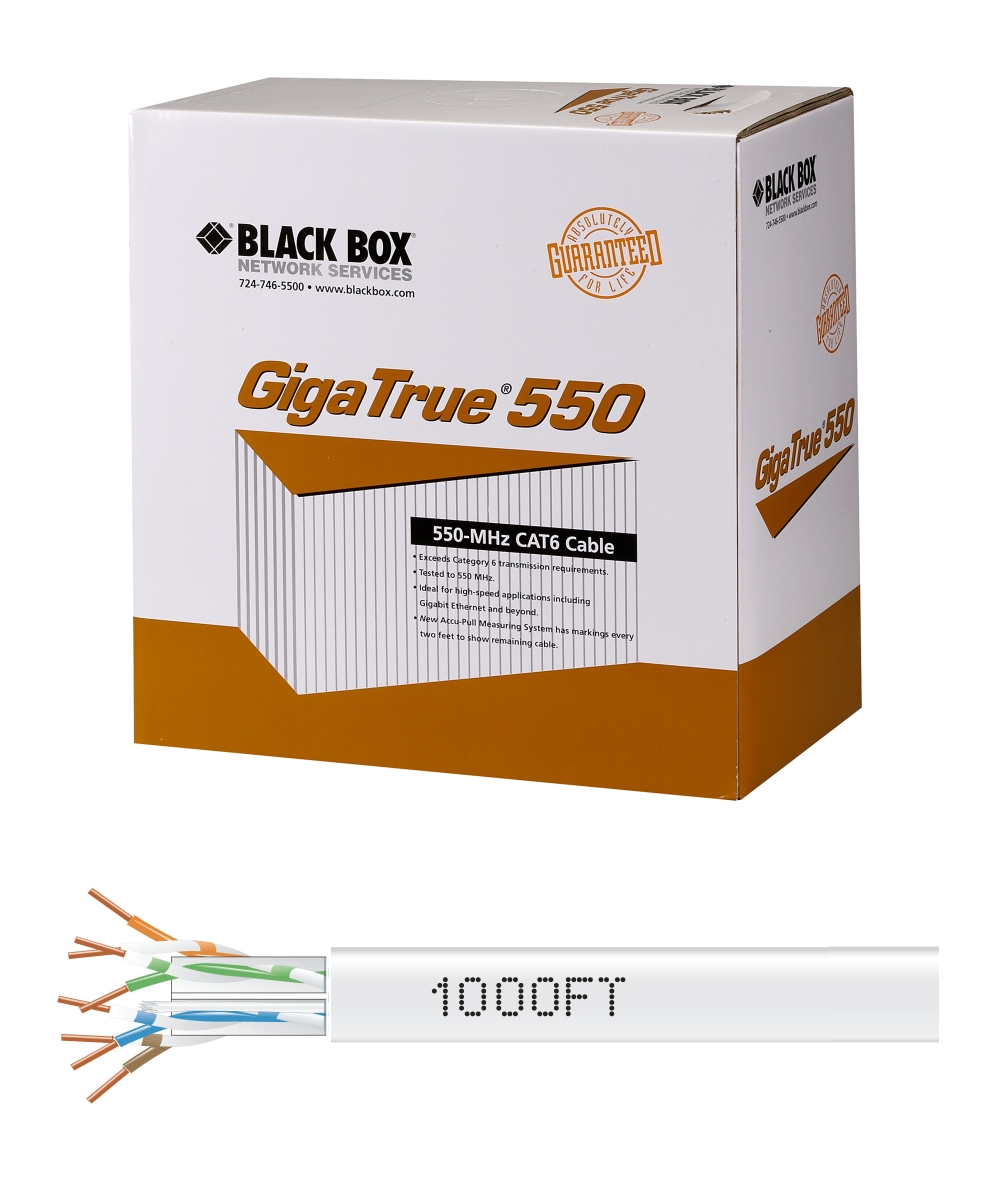 - Black Box Gigatrue 550 Cat.6 Bulk Cable - Bare Wire - Bare Wire - 1000ft - White