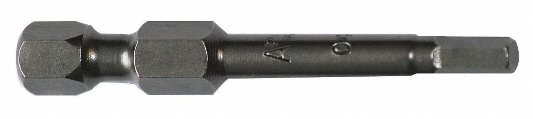 'Power Bit,Shank Size 1/4 In.,Bit Style Hex,Point Size 1/8 In.,Bit Length 5 In.,Material Tool Steel,Package Quantity 5'