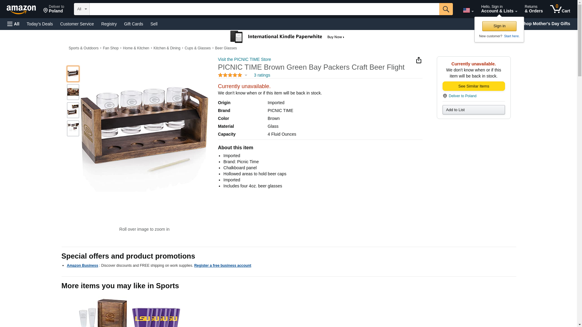PICNIC TIME Brown Green Bay Packers Craft Beer Flight
