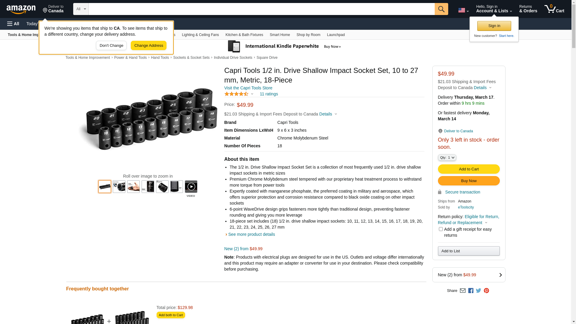 - 18-piece set includes (18) 1/2 in. drive shallow impact sockets: 10, 11, 12, 13, 14, 15, 16, 17, 18, 19, 20, 21, 22, 23, 24, 25, 26, 27 mm