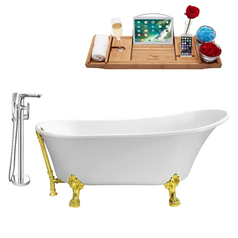 Streamline | Clawfoot Soaking 67" NH340GLD-GLD-120 Acrylic Bathtub, White | Comes with External Drain And Gold Overflow | Bamboo Tray Included