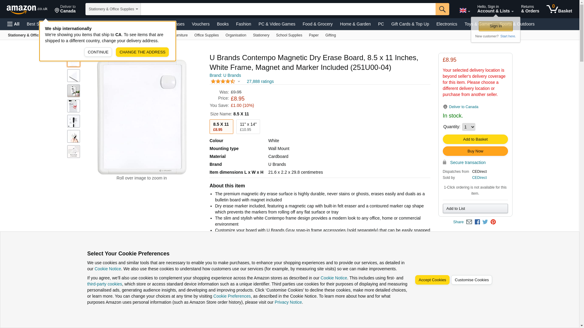 U Brands Contempo Magnetic Dry Erase Board, 8.5 x 11 Inches, White Frame - 251U00-04