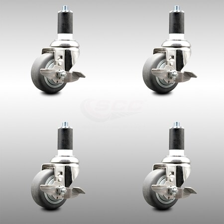 Service Caster Brand 3.5 Inch 316 Stainless Steel Light Duty Swivel Expanding Stem Caster Set of 4 Thermoplastic Rubber Caster Wheels and 1-5/8” Stem–920lbs. Total Cpty–Casters with Locking Brakes