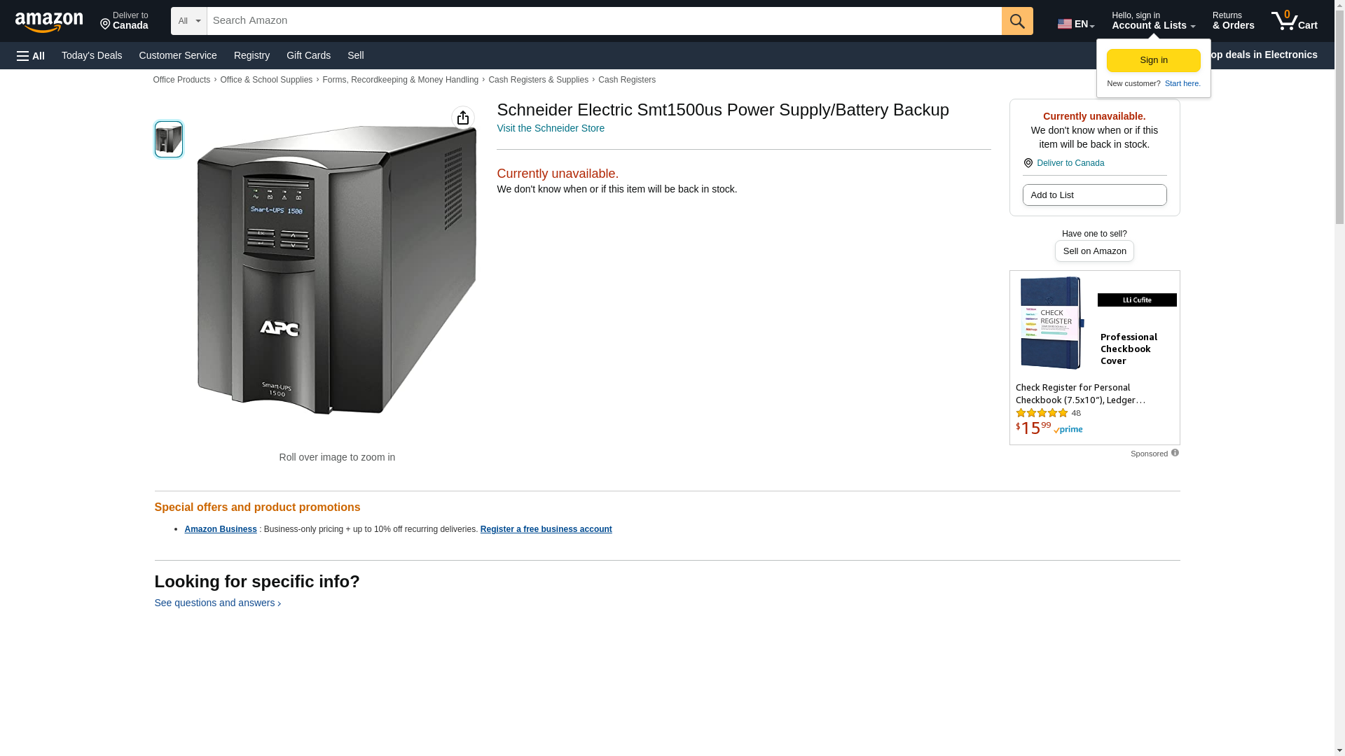 Schneider Electric Smt1500us Power Supply/Battery Backup