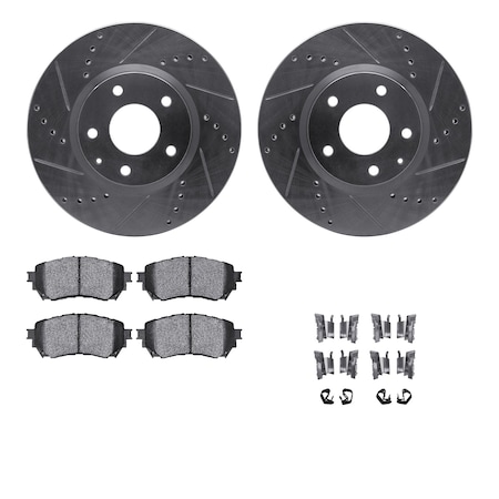 7512-80065, Rotors-Drilled and Slotted-Silver w/ 5000 Advanced Brake Pads incl. Hardware, Zinc Coat