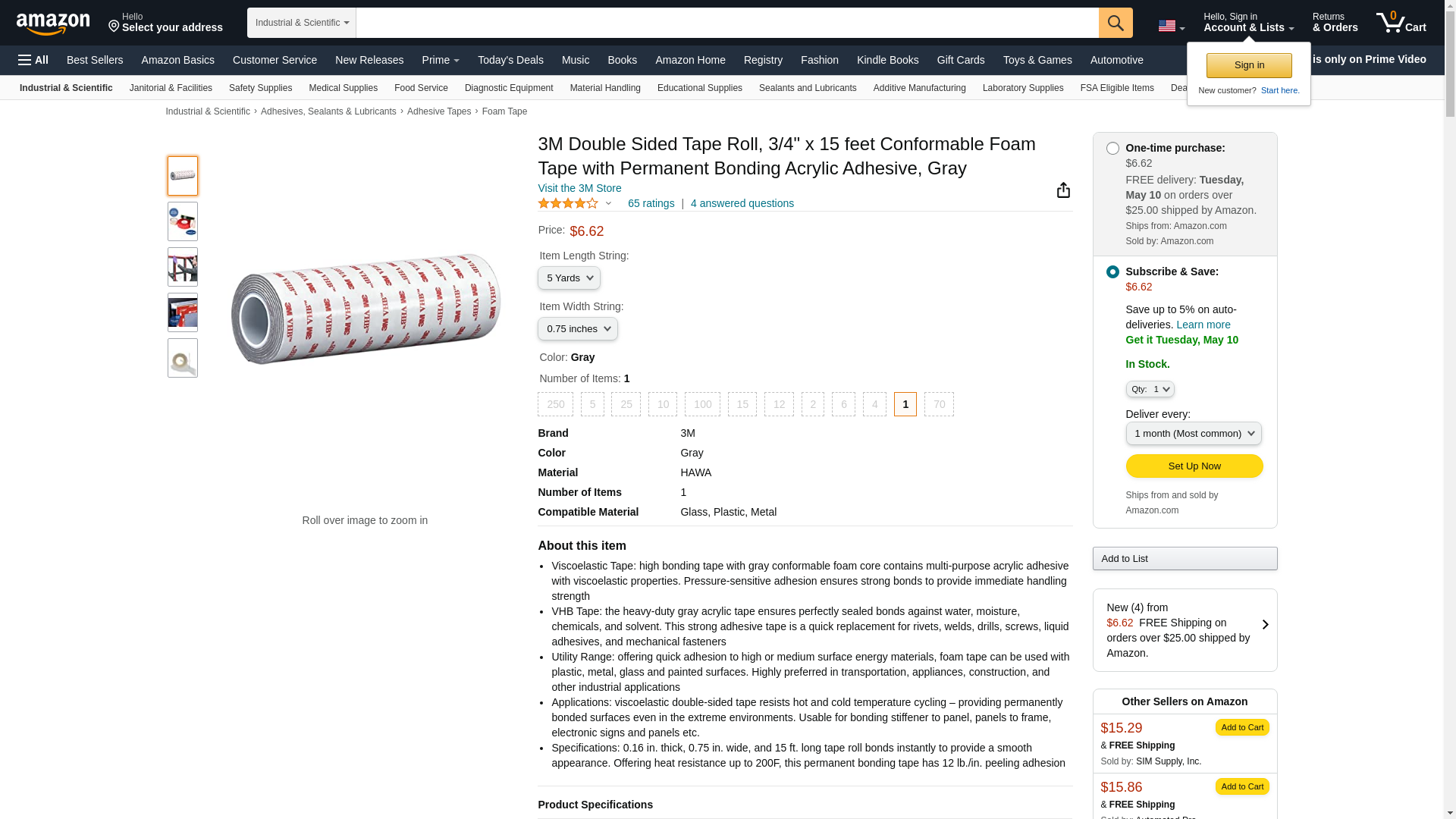 3M Double Sided Tape Roll, 3/4" x 15 feet Conformable Foam Tape with Permanent Bonding Acrylic Adhesive, Gray