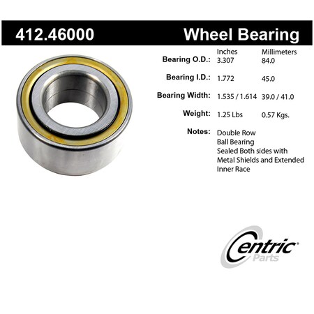 Centric Premium Double Row Wheel Bearing 412.46000 | 412.46000