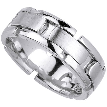 Contemporary men's ring handcrafted of 14 karat white gold.Measures 7mm wide.