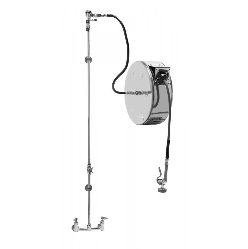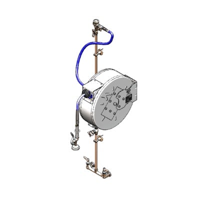 T&S Brass Hose Reel Assembly, Closed 50' Hose Reel, Exposed Piping & Accessories