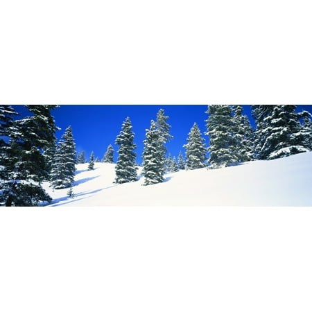 Panoramic Images Stretched Canvas Art - Pine trees on a snow covered hill, Colorado, USA - Large 36 x 12 inch Wall Art Decor Size.