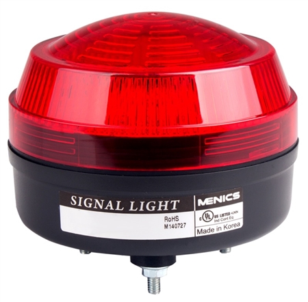 Menics MS86W-RFF-R 86mm low profile beacon light is 100-220V AC with a red lens. Steady & flashing rotating LED light. 2 flashing patterns