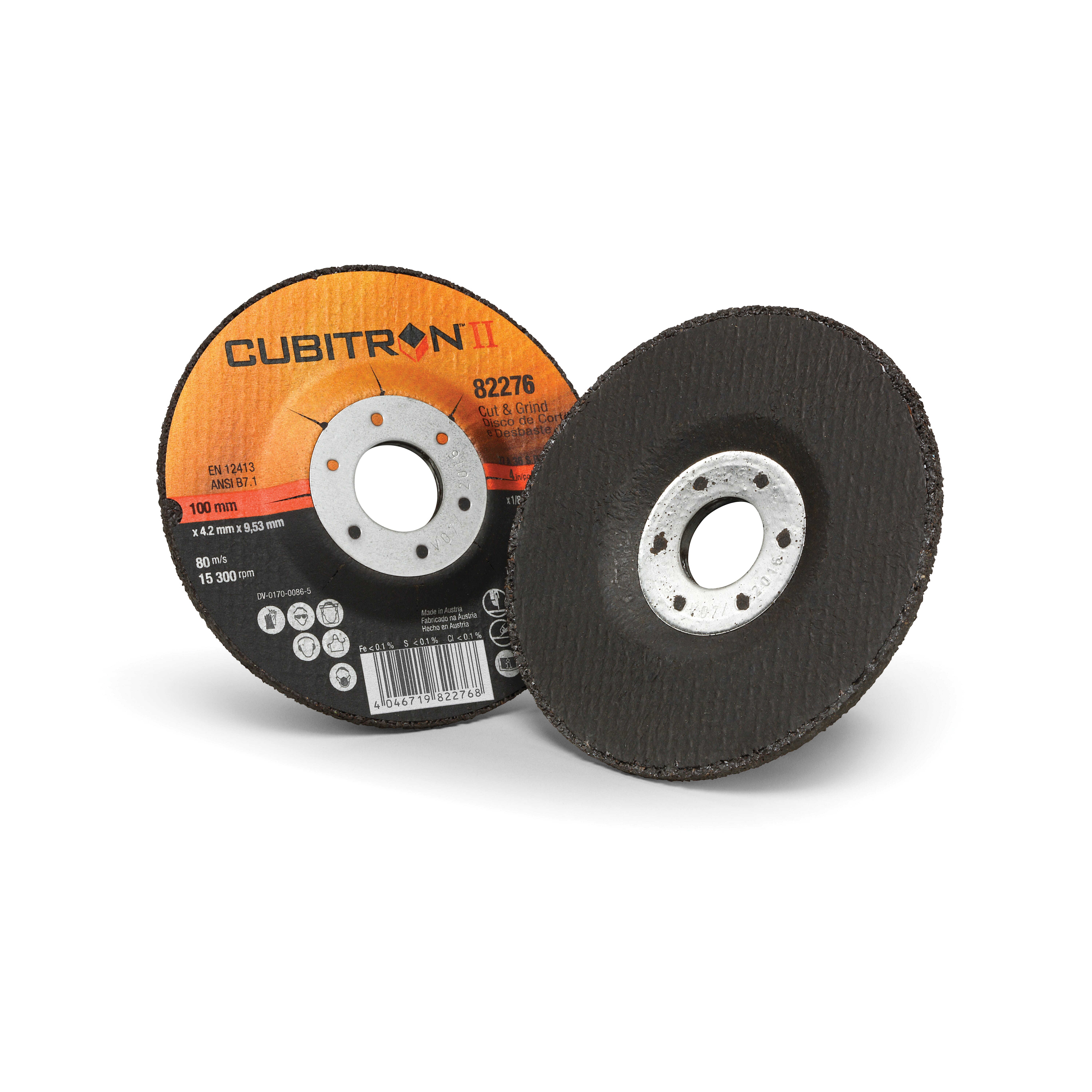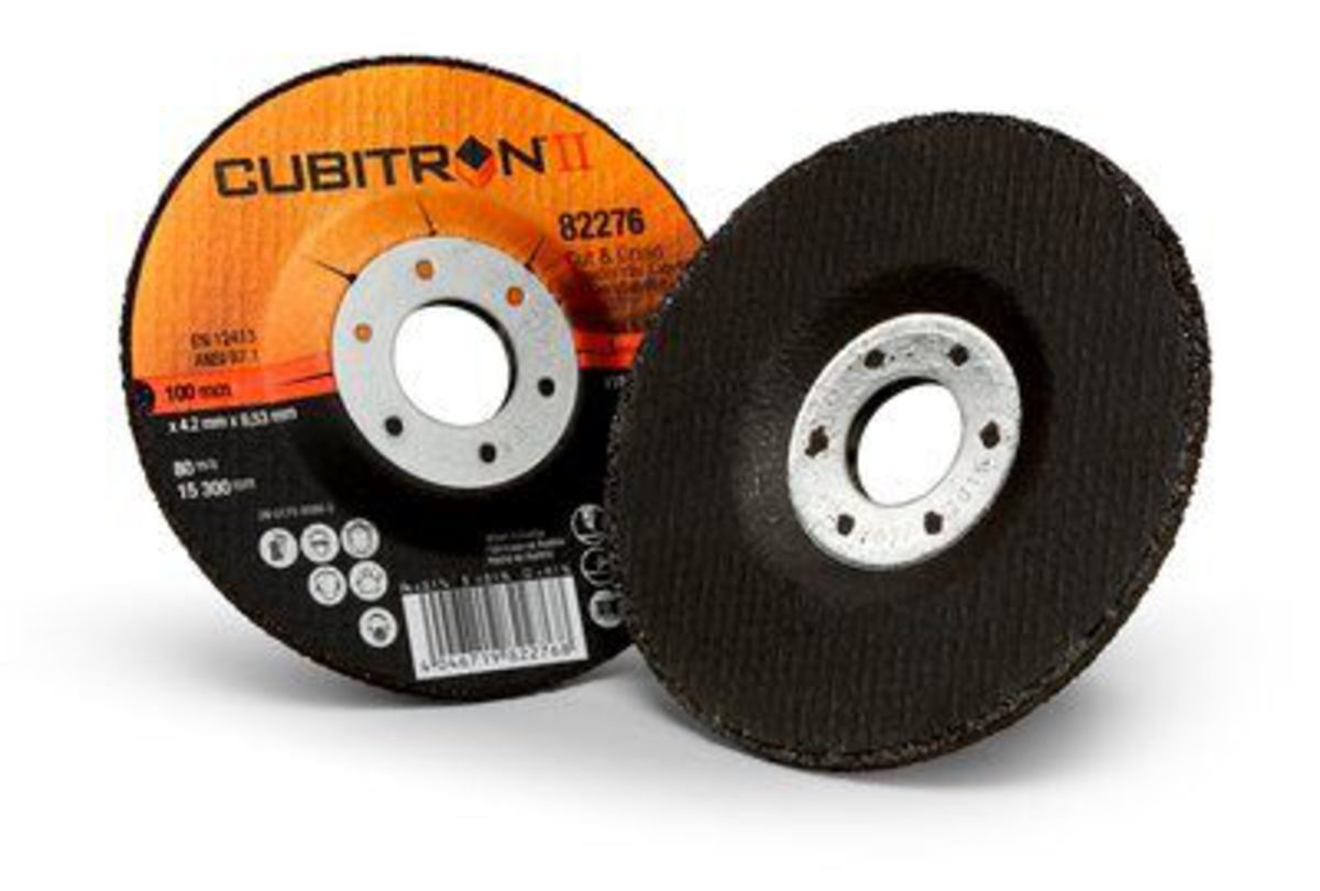 Abrasive Wheel, Cubitron??? II, Type: Cut and Grind, Right Angle; Diameter: 4 Inch; Thickness: 1/8 Inch; Arbor Size: 3/8 Inch; Material: Precision Shaped Ceramic; Grit Size: 36+; Bonding Material: Resin; Maximum Speed: 80 mps; Pack: 20 Each/Case. Our 3M??? Cubitron??? II Cut and Grind Wheel features 3M Precision Shaped