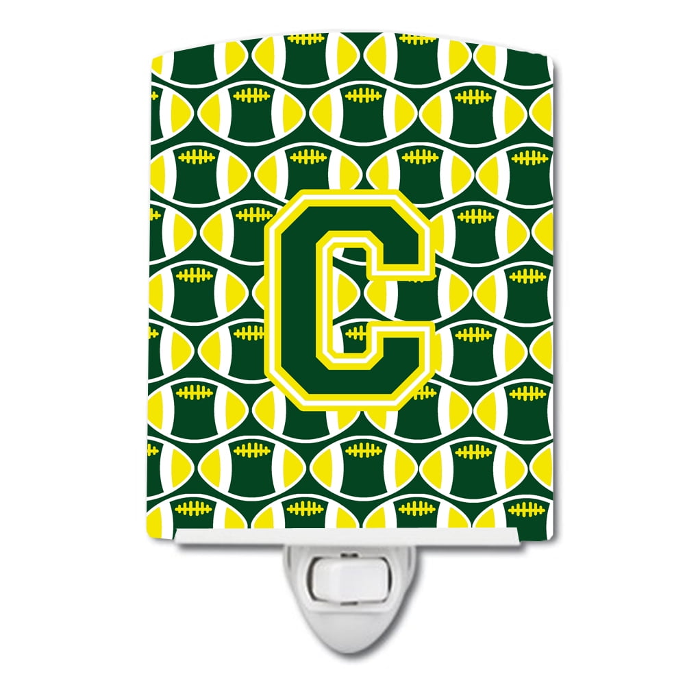 Carolines Treasures CJ1075-CCNL Letter C Football Green & Yellow Ceramic Night Light