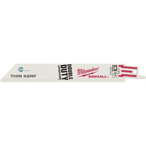 - Milwaukee 48-00-4186 6" 24 Teeth per Inch Sawzall Blade (Package of 5), NA