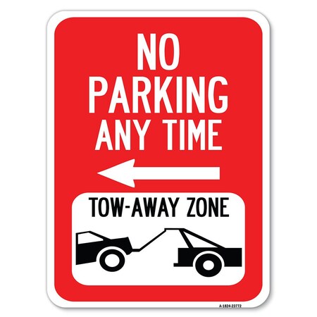 No Parking Anytime Tow-Away Zone with Left Arrow Heavy-Gauge Aluminum Rust Proof Parking Sign