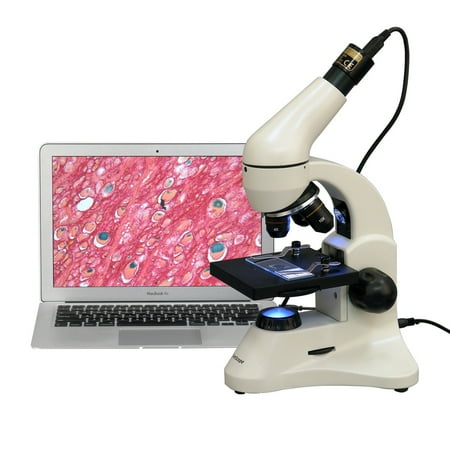 AmScope M120C-2L-PB10-E3 Digital Microscope, WF10x and WF25x Eyepieces, 40x-1000x Magnification, Brightfield, Upper and Lower LED Illumination, Plain Stage, Includes Blank and Prepared Slides, 3MP Camera and Software
