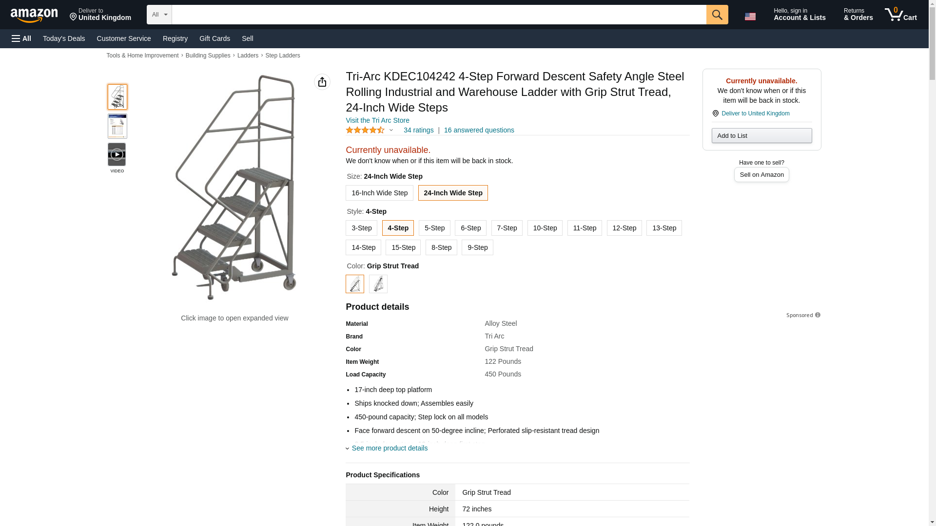 Tri-Arc KDEC104242 4-Step Forward Descent Safety Angle Steel Rolling Industrial and Warehouse Ladder with Grip Strut Tread, 24-Inch Wide Steps