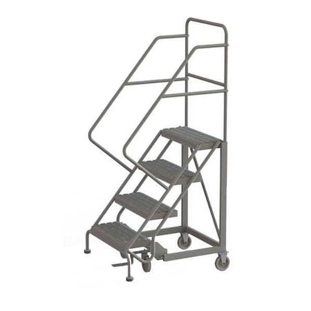 4 Step 24"W Steel Safety Angle Rolling Ladder, Grip Strut, Gray - KDEC104242