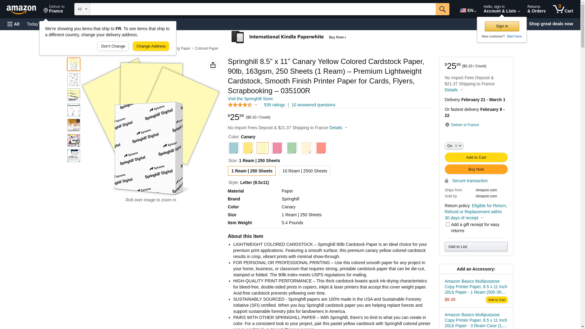 Springhill Digital Index Color Card Stock, 8-1/2" x 11", Canary, 250 Pack (SGH035100)