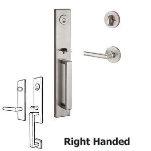 Reserve Santa Cruz Collection - Right Handed Single Cylinder Santa Cruz Handleset with Tube Door Lever with Contemporary Round Rose in Satin Nickel by Baldwin Hardware - SCSANxTUBRCRR150 | MyKnobs