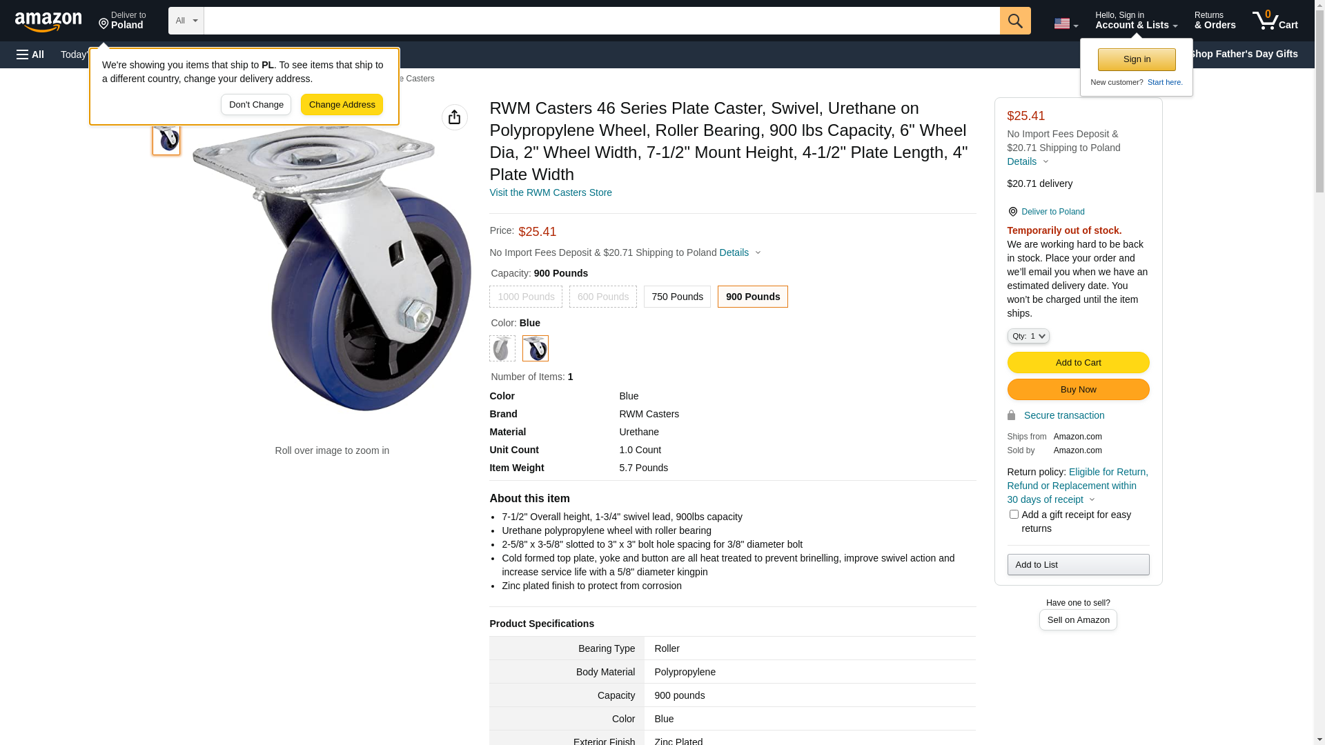 | Feature | 7-1/2" Overall height, 1-3/4" swivel lead, 900lbs capacity |