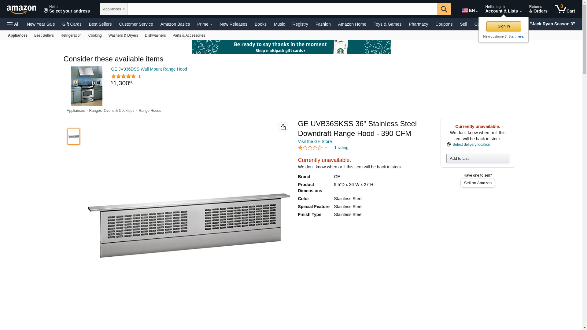 | Appliances Connection | UVB36SKSS | 1 | Temporarily Out of Stock, Coming In on 03/25/2024 | 1 | 1 @ $1275.99 |