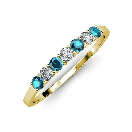 <ul> <li>3 Round Diamond & 4 Treated Blue Round Diamond set using Prong Setting.</li> <li>SI2-I1-Clarity, G-H Color Diamond.</li> <li>Gemstones may have been Treated to Improve their Appearance or Durability & may Require Special Care.</li> <li>The Natural Properties & Composition of Mined Gemstones define the Unique Beauty of each Piece. The Image may show Slight Differences to the Actual Stone in Color & Texture.</li> <li>All our Diamonds to our Best Knowledge are not Conflict Diamonds.</li> </ul>