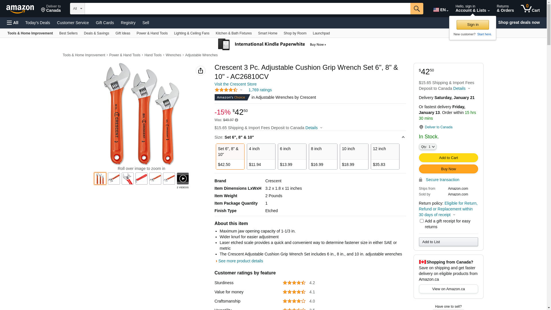 - The Crescent Adjustable Cushion Grip Wrench Set includes 6 in., 8 in., and 10 in. adjustable wrenches