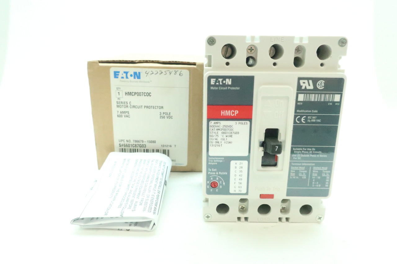 - Eaton HMCP007C0C Circuit Breaker,7A,3P,600VAC,HMCP