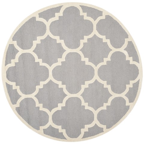 SAFAVIEH Cambridge Collection 8' Round Silver / Ivory CAM140D Handmade Moroccan Trellis Premium Wool Area Rug