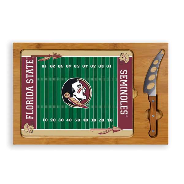 Picnic Time 910-00-505-174-0 Florida State Seminoles Digital Print Icon-Football Cutting Board Tray with 3 Piece Knife S