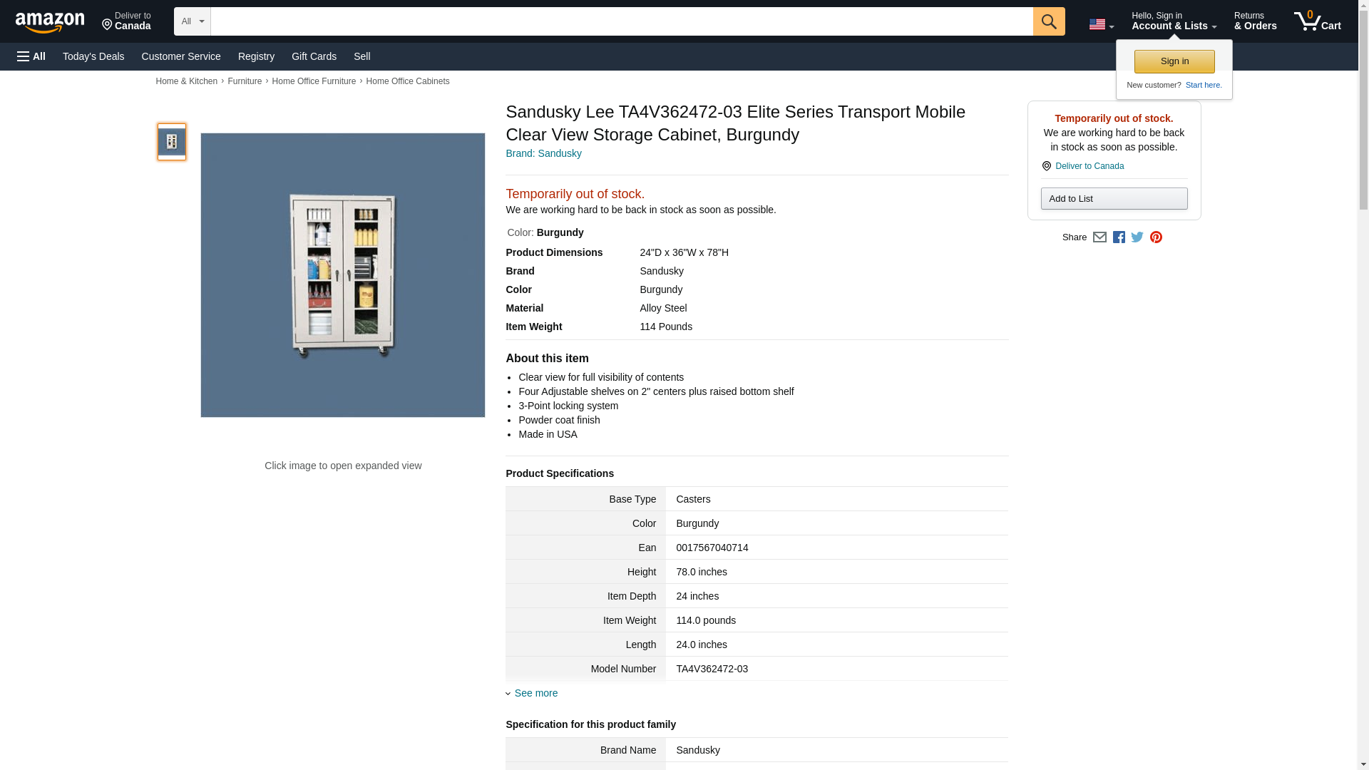 Sandusky Lee TA4V362472-03 Elite Series Transport Mobile Clear View Storage Cabinet, Burgundy. Clear view for full vi...