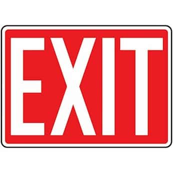 7" x 10" Aluminum Safety Sign: "Exit" Clearly mark exits in your facility with this bold red sign with white text. Aluminum (VA) Aluminum withstands wash downs, harsh elements, abusive conditions, and features good chemical, abrasion, and impact resistance. Aluminum is excellent for indoor and outdoor usage, making it ideal for a wide variety of industrial-strength applications. All Aluminum signs feature Accuform's TedLex liquid-based UV-protective coating, included at no charge. TedLex is perfect for indoor and outdoor use, prevents fading, and resists chemicals, abuse, and graffiti. Aluminum signs provide the strength of metal, yet never rust. Aluminum withstands wash downs, harsh elements, and abuse.