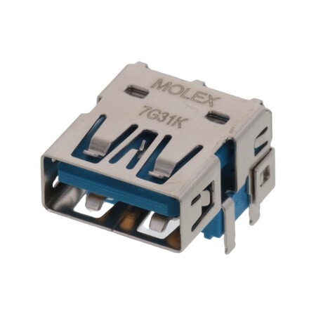 | Feature | <b>Price For:</b> Pack of 100 <b>Manufacturer</b>: Molex <b>Product Category</b>: USB Connectors <b>RoHS</b>: <b>Product</b>: USB Type A Connectors <b>Standard</b>: USB 3.0 <b>Number of Contacts</b>: 9 Contact <b>Number of Ports</b>: 1 Port <b>Gender</b>: Female <b>Current Rating</b>: 1.8 A <b>Termination Style</b>: Through Hole <b>Brand</b>: Molex <b>Color</b>: Nickel <b>Connector Type</b>: Receptacle <b>Contact Material</b>: Copper Alloy <b>Contact Plating</b>: Gold |