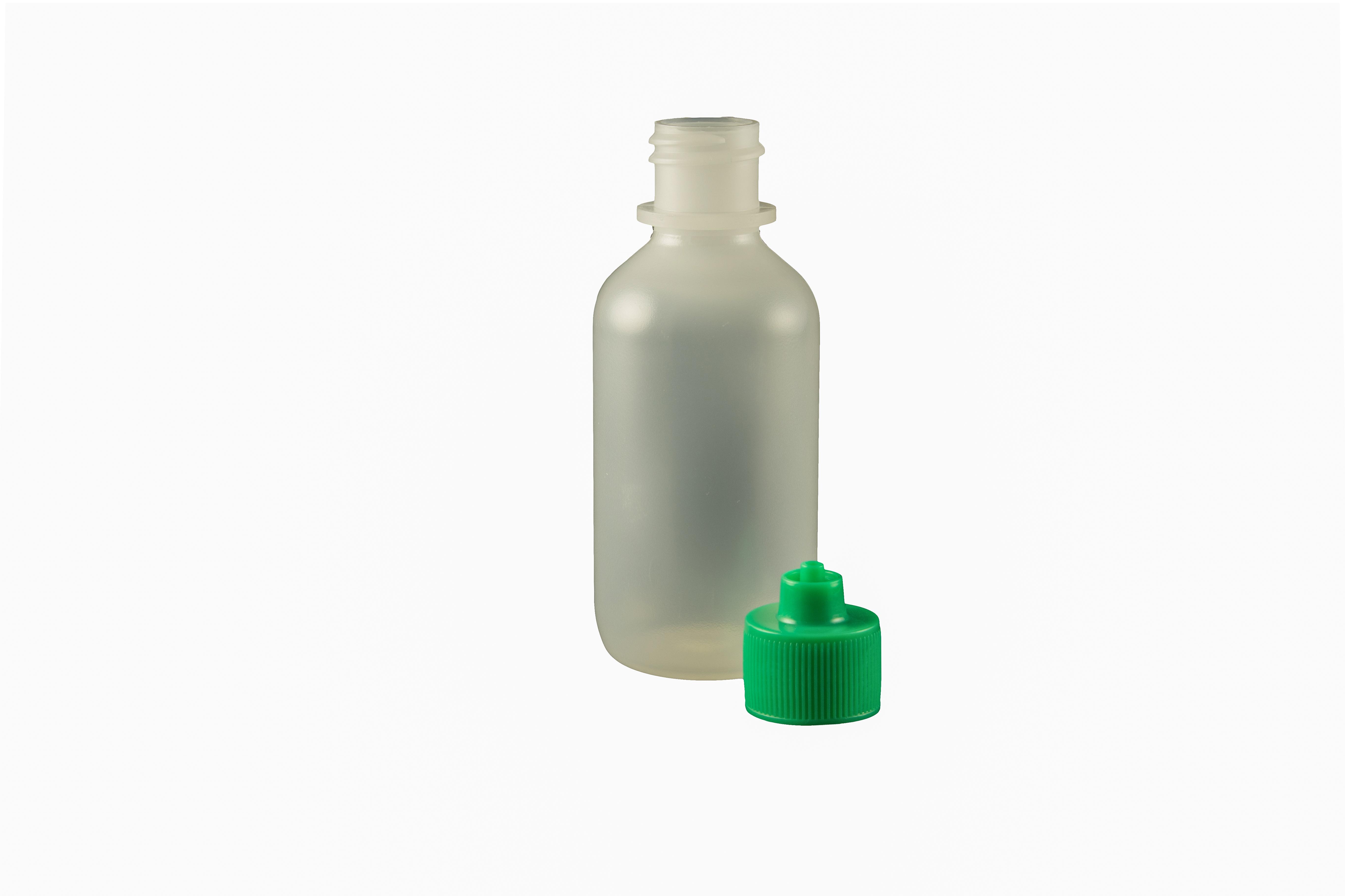 Green - 2 oz Boston Round style bottle and cap packages are offered in convenient bags of 10 and different colored cap options are available. This style is typically used as a squeeze bottle to manually dispense material with accuracy. We offer these bottle packages in 0.5, 1.0 and 2.0 ounces sizes and they are ideal for dispensing flux, solvents, adhesives, and solder mask.