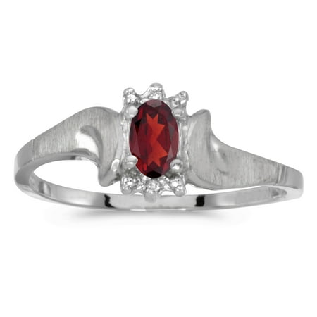 10k White Gold Oval Garnet And Diamond Satin Finish Ring