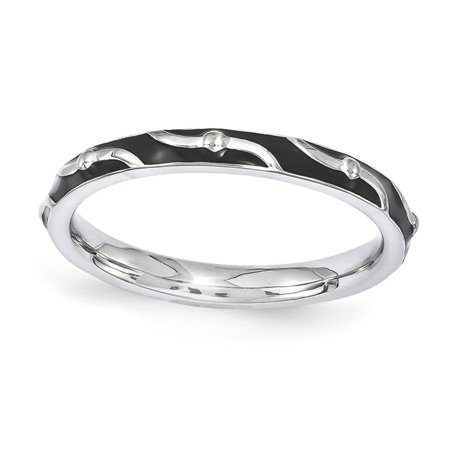 925 Sterling Silver Rhodium-Plated Black Enamel Swirl Stackable Ring Size 6