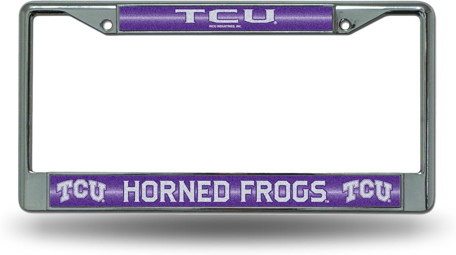 NCAA Rico Industries Bling Chrome License Plate Frame with Glitter Accent, TCU Horned Frogs