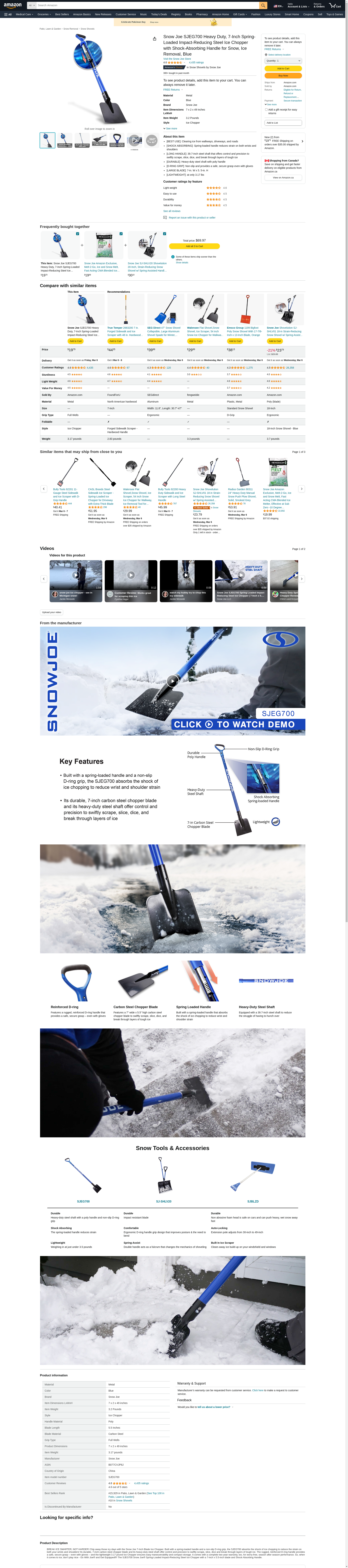 Snow Joe SJEG700 Spring Loaded Impact Reducing Steel Ice Chopper | 7-Inch x 5.5-Inch | Shock Absorbing Handle: Maxedbuy.com