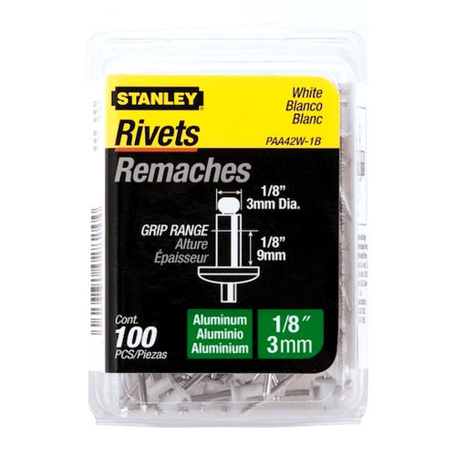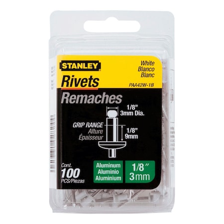 Stanley Paa42W-1B 1/8 Inch X 1/8 Inch White Aluminum Rivets,Pack of 100(Pack of 100)