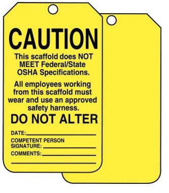 Accuform TSS102CTP Scaffold Status Safety Tag: Caution