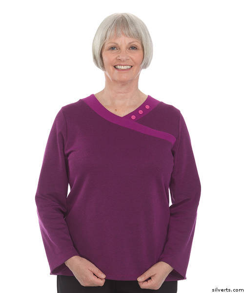 Silverts 249110102 V Neck Adaptive Top for Women, Plum - 3XL